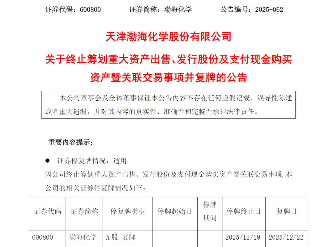 这场涉及渤海化学转型的重大资产重组事项,仅持续了两周就匆匆结束。
